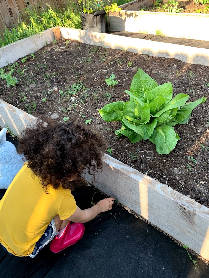 We owned a house deep in the suburbs of DFW and commuted to work average of 2+ hours a day, plus daycare pickup. We had little time for activities after work and spent the weekends mostly recovering from our hectic work week. It seemed the only energy we could muster was to go to the backyard and live amongst the flowers, fruits, and veggies. My husband James, built our garden and lent his green thumb to our bounty of veggies. I had an eye for flowers and grew roses in a potted garden. Our toddler brought her appetite and would snack all day in the garden if we let her.